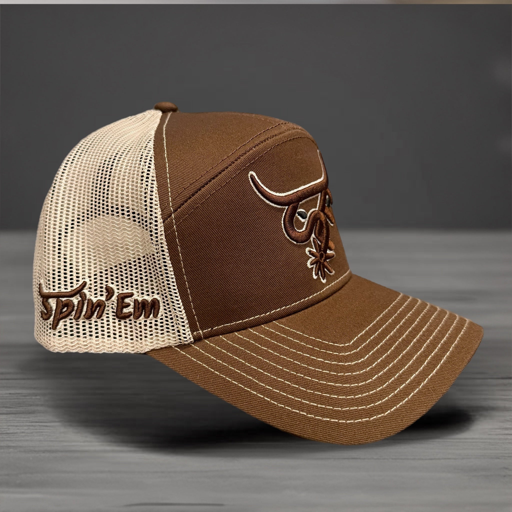 -Embroidered Bull Logo & Side Spin’Em